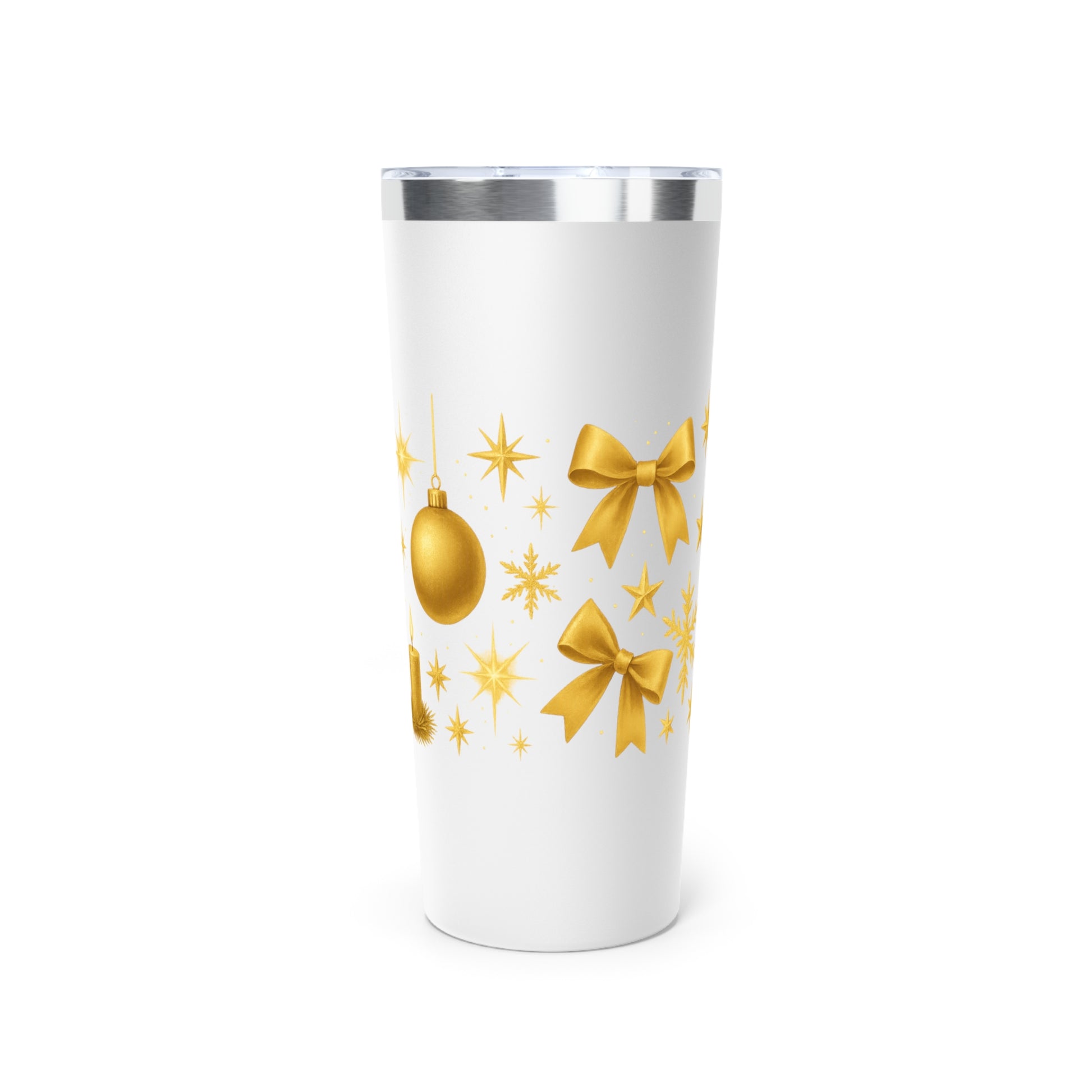 Bring a touch of golden holiday magic to your everyday routine with our Golden Candle & Stars 22oz Stainless Steel Tumbler. Featuring shimmering ornaments, twinkling stars, a warm glowing candle, and a delicate gold bow, this cup blends festive sparkle with a cozy, elegant holiday feel.