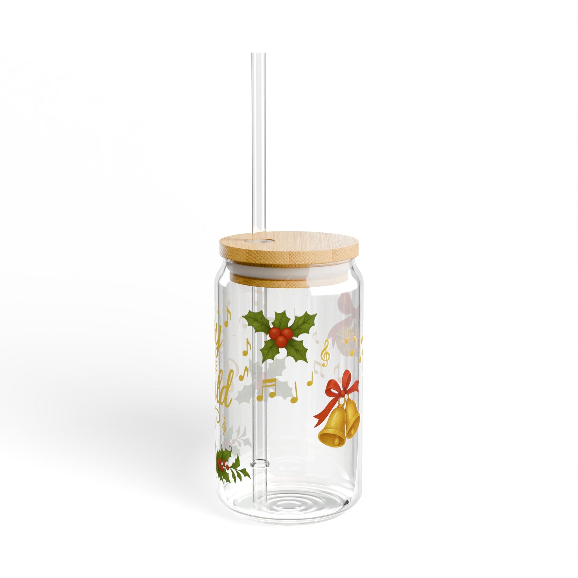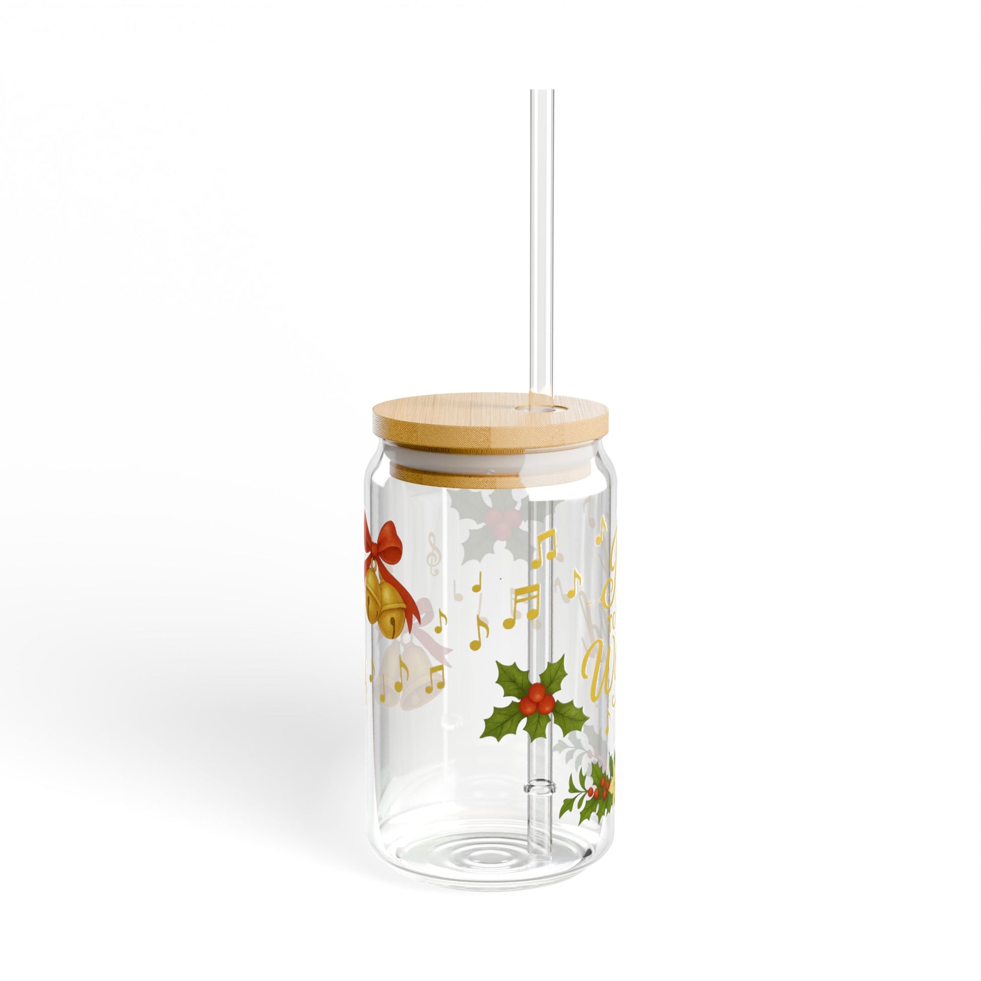 Quench your thirst in bright holiday style with our 16oz Joy to the World Sipper Glass. Made from durable clear tempered glass, this cup is sleek, sturdy, and perfect for festive iced coffees, hot cocoa, teas, cocktails, or any cozy holiday drink. The elegant gold lettering paired with poinsettias and greenery brings a classic Christmas glow to every sip.