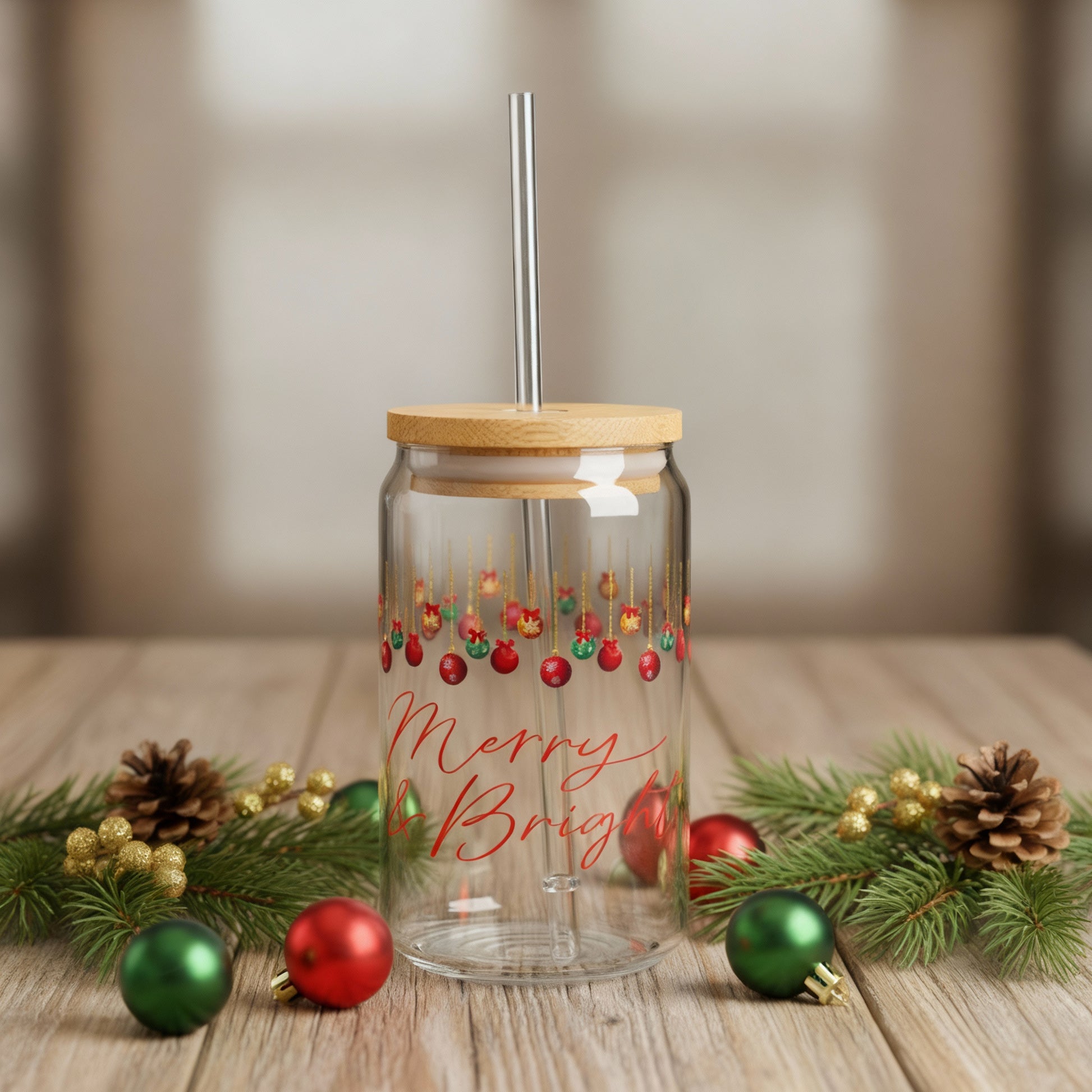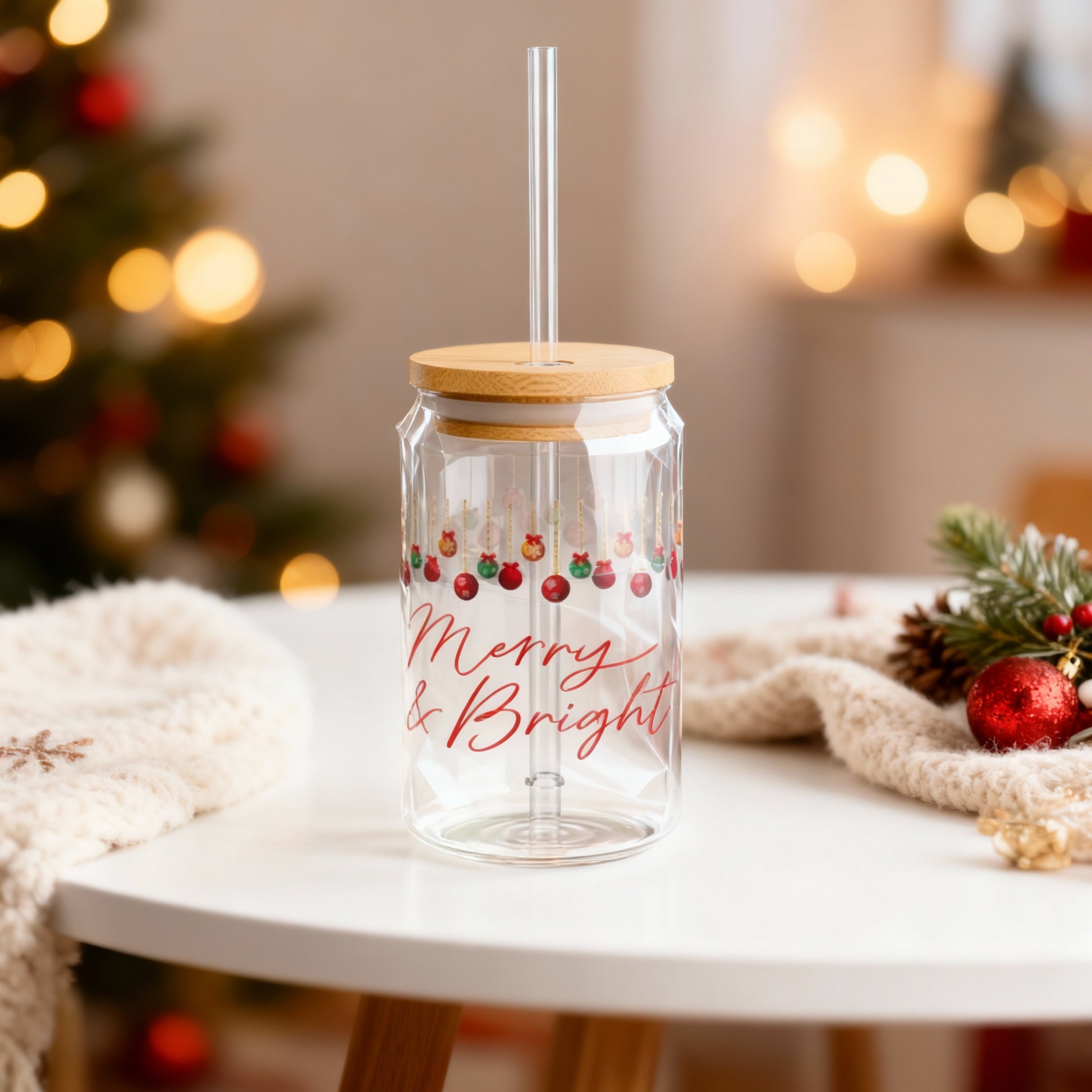 Each glass comes complete with a bamboo gasket-push lid and a reusable Tritan plastic straw, giving you a spill-resistant, stylish way to enjoy your beverages all season long. Whether you’re decking the halls, wrapping gifts, or heading to a holiday party, this cup brings a little “merry & bright” to every sip.